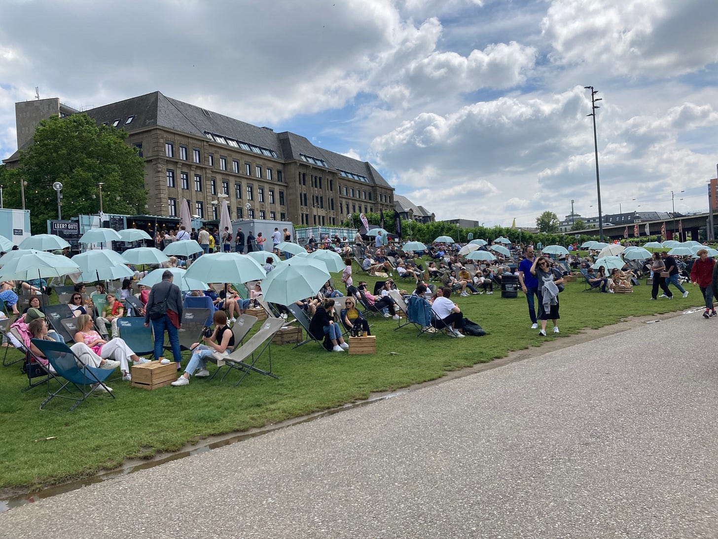 A few decades ago, the city dug a tunnel for a big highway and reclaimed its waterfront. Now that stretch is Rheinuferpromenade, miles of shops, restaurants, event venues, and green spaces. When I was there, the area was packed with local families quietly relaxing in the sun at the same time the Altstadt was earning its “longest bar in the world” title with soccer festivities.
