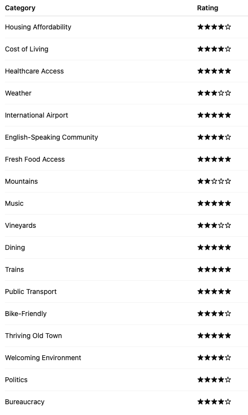 If there’s a knock on Düsseldorf, it’s that it is so urban. It’s not an outdoor playground like Innsbruck or even Bern with its looming mountains. But it’s a great place to see music, theater, and interesting people. It’s right in the middle of Western Europe and a great base for visiting the rest of the continent. But it doesn’t have the majestic landscape and the weather tends to be a little grayer. It’s cloudier than the places that retirees flock to.