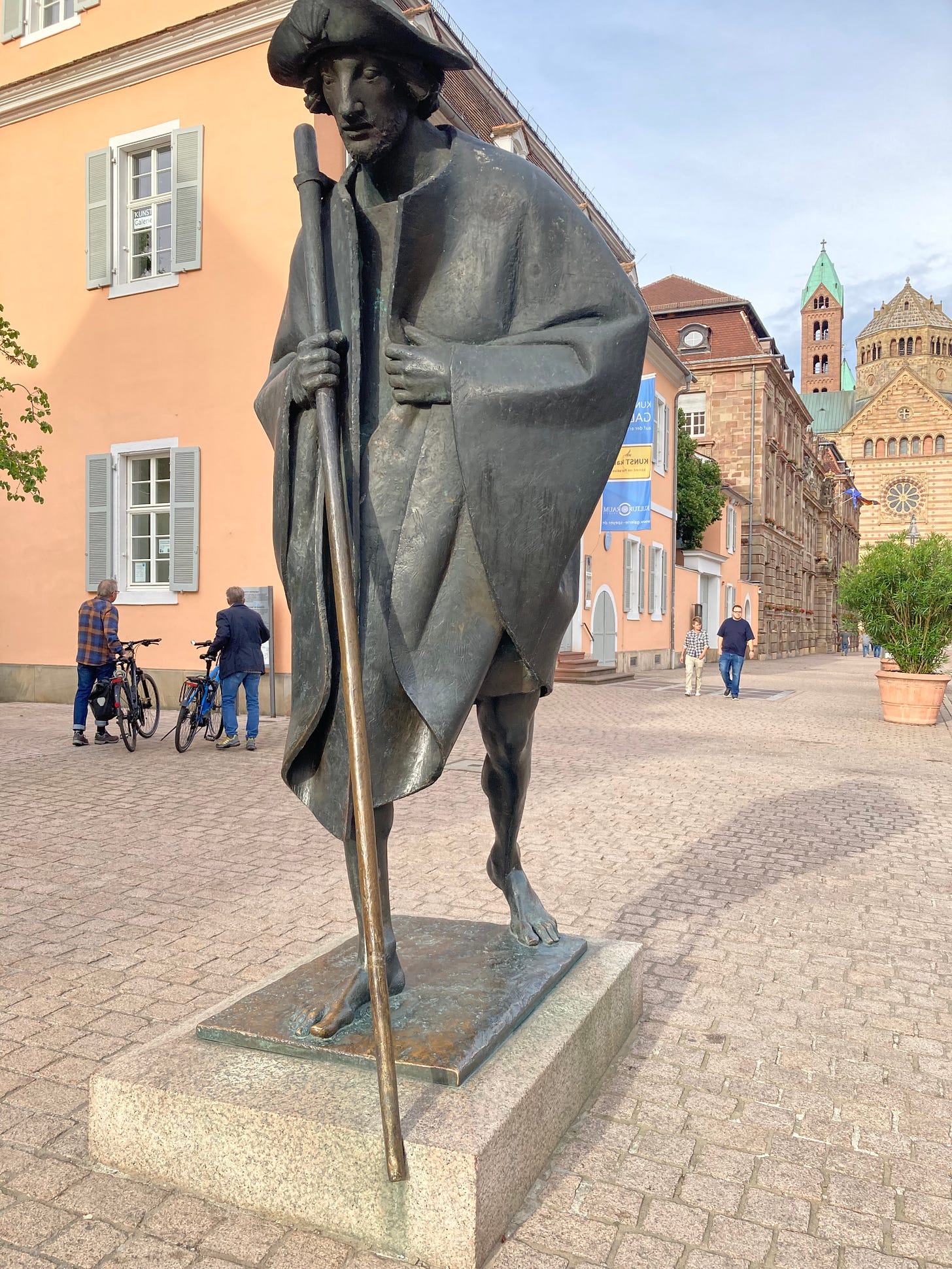 It turns out Jakob Spilger doesn’t exist, but Jakobs Pilger is the German phrase for one who walks the Camino. The statue was a gift to the city from a Catholic Bishop to honor the two-thousand-year anniversary of the city's founding along with a nod to those that make that pilgrimage.