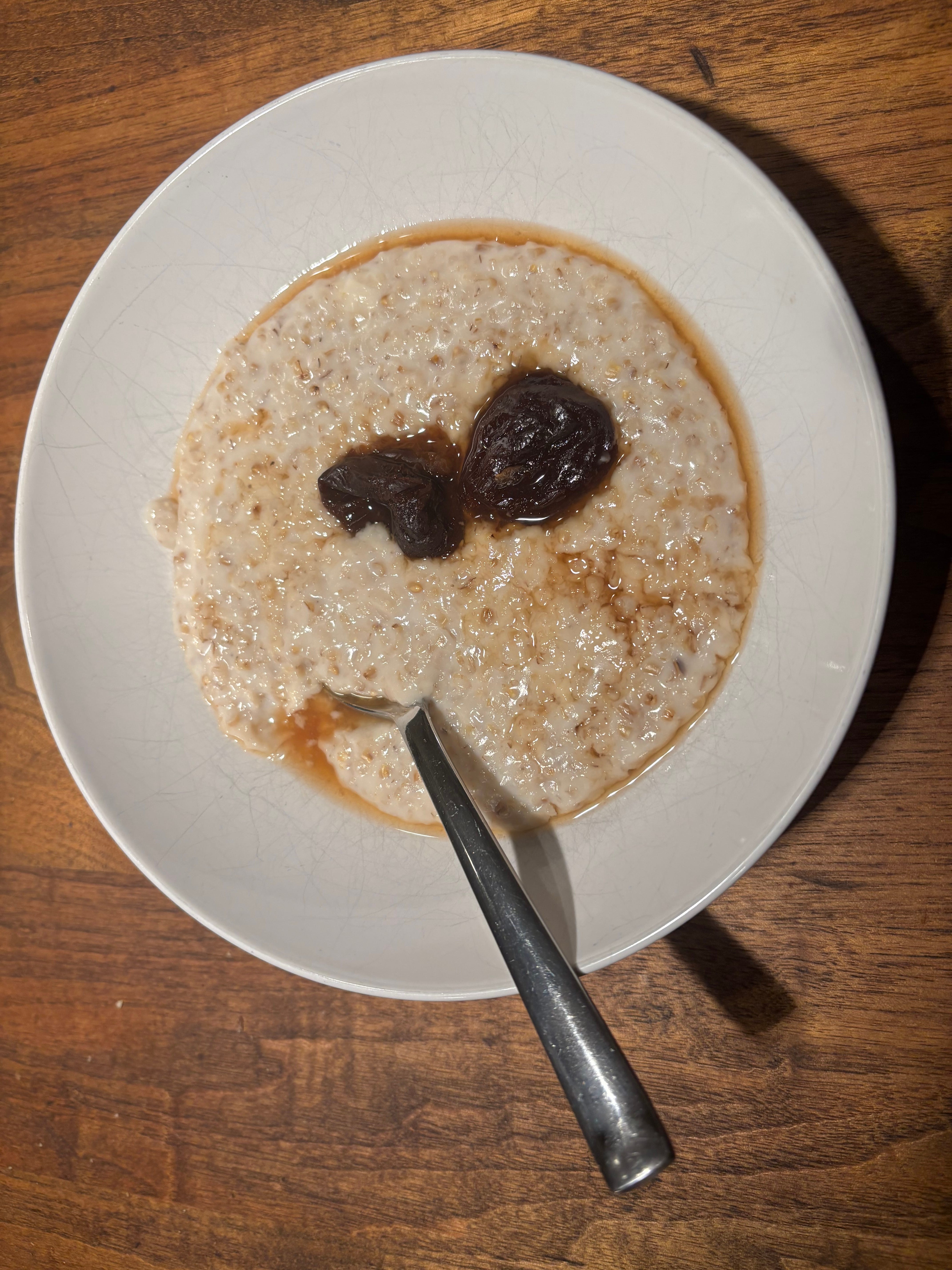 Breakfast was provided at every hotel. Porridge served with stewed prunes was on each menu. I liked the meal well enough that when I came home, I bought some prunes and developed my own little recipe. I have them over steel-cut oats a couple of times a month. And they make me think of riding with friends. And yes, they do all the other things you think they’d do.